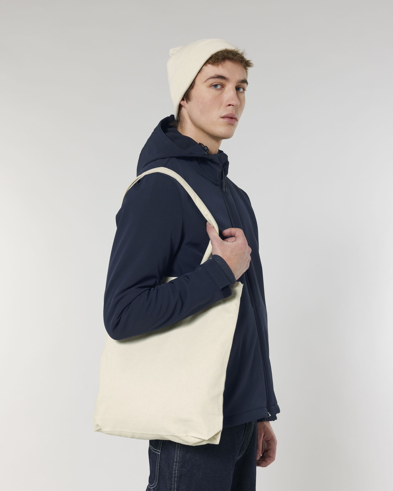 Orlo a doppia piega per maggiore solidità e qualità Manici lunghi con cucitura a croce di rinforzo Cuciture sulla parte inferiore della borsa per creare volume